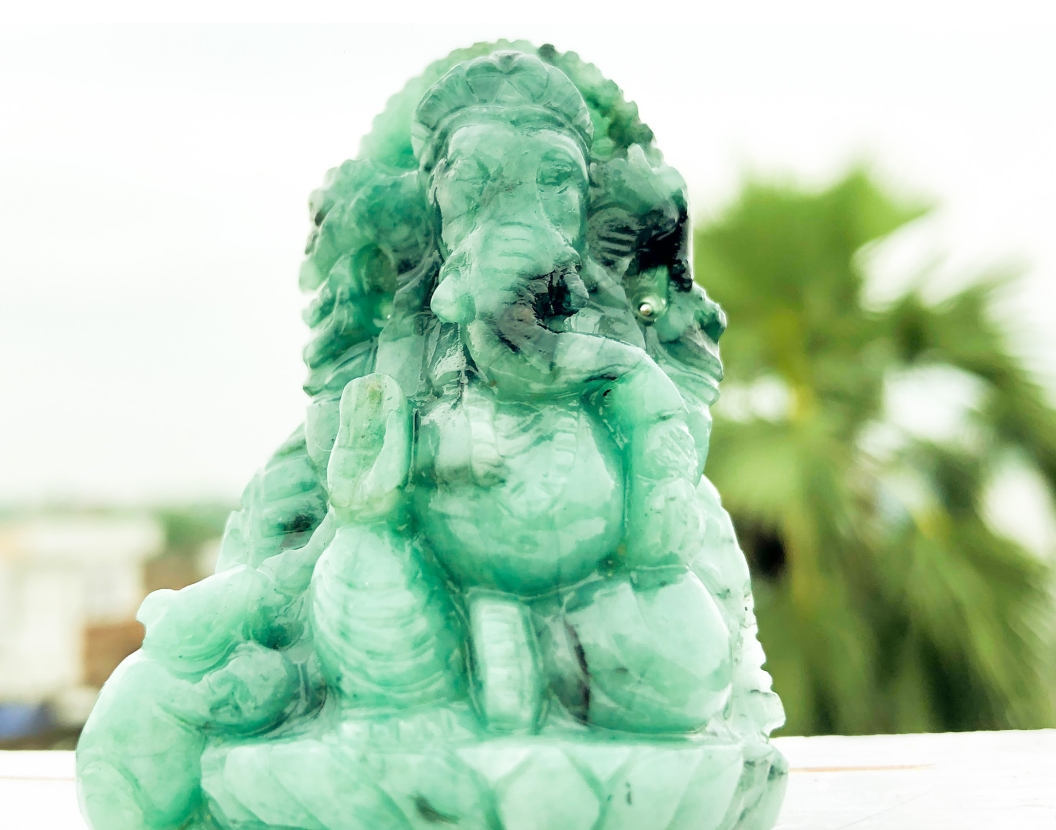 A 245-carat Ganesha statue crafted from natural emerald by a skilled Indian artisan
