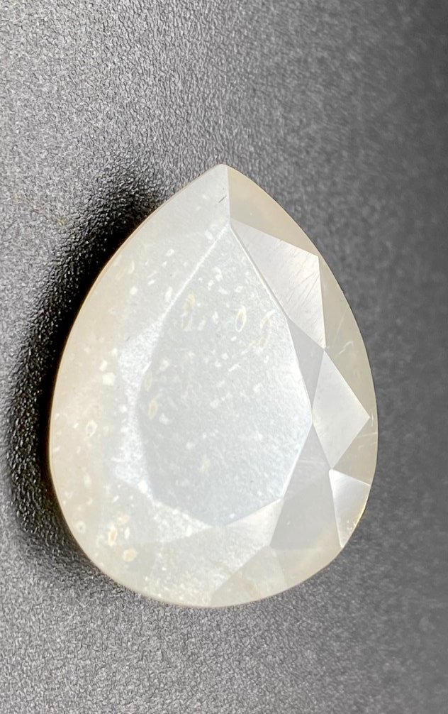 A 15-carat pear-shaped moonstone, is highly regarded for promoting mental peace and enhancing memory